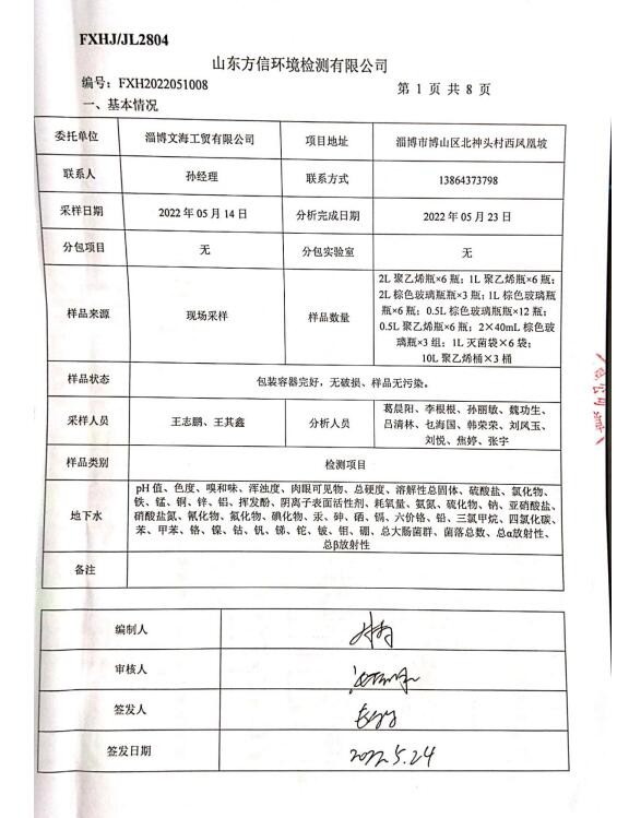 地下水檢測報(bào)告